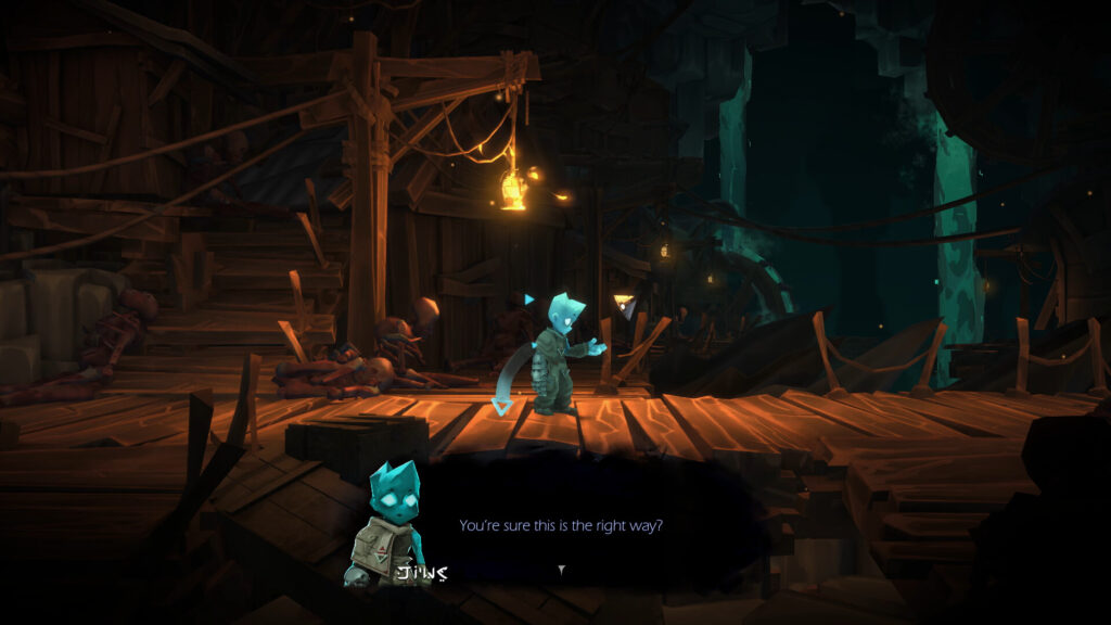 The visuals: It’s a beautiful game. The art is unique and the characters have are memorable. The animation is very good and there’s subtle flourishes of detail that make the world feel alive.